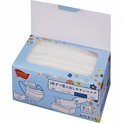 全国マスク工業会マーク付き。1枚ずつサッと取り出せるマスク。「耳ゴムが絡まって取り出しにくい」というお困りごとをすっきり解消!やわらかい平ゴム使用。