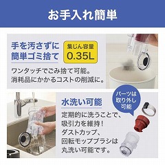 ●タンク容量(集じん)/ゴミ捨てラインまで:0.3L