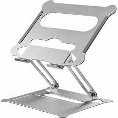 テレワークやオンライン授業を快適にするアルミ合金素材のノートパソコンスタンド。無段階で高さ調節が可能。目線を上げることで姿勢を改善し、身体への負担を軽減。