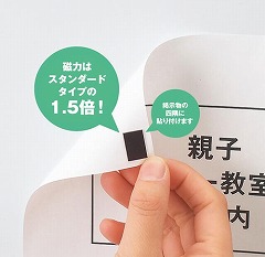 磁力はスタンダードタイプの1.5倍!カット済みの粘着剤付マグネットシートなので、そのままスグに使えます。