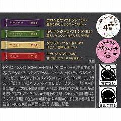 〈コロンビア・ブレンド〉〈ブラジル・ブレンド〉〈モカ・ブレンド〉〈キリマンジャロ・ブレンド〉の4種のこだわりの味わいが1箱で楽しめる大容量サイズです。