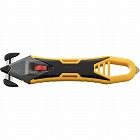 刃に指が触れにくい安心設計の開梱用カッター。ワンタッチで着脱できる替刃式で、タフなボディはハードな作業にも対応します。カートンの解体や床材のカットにも。