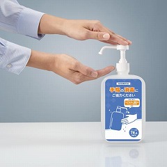 高濃度(約80%%)アルコールなのに、手指に嬉しい!保湿成分「ヒアルロン酸Naとグリセリン」を配合。