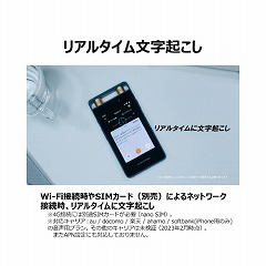 ※4G接続には別途SIMカードをご用意いただく必要があります(nano SIM)。※対応キャリアは、au/docomo/楽天/ahamo/softbank(iPhone用のみ)の音声用プランです。※その他のキャリアは未検証です(2023年2月時点)。※またAPN設定にも対応しておりません。※文字起こし処理には通信量を消費しますので、Wi-Fiでの接続をおすすめしております。※【返品に関するご注意】開封後はお客様のご都合による返品はお受けできません。