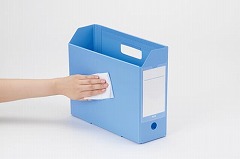 衛生面に配慮した抗菌剤配合のPPボックスファイル。内側・外側ともに抗菌仕様で、アルコール消毒液でのふき取りも可能。