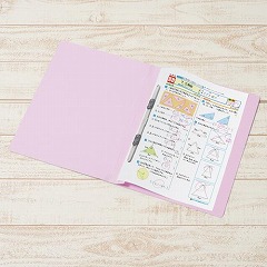 ひらがなで「ねん・くみ・ばん・なまえ」が印刷された、低学年向けのフラットファイル。迷わず書けて、きれいに揃う。