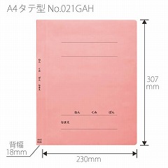 ひらがなで「ねん・くみ・ばん・なまえ」が印刷された、低学年向けのフラットファイル。迷わず書けて、きれいに揃う。