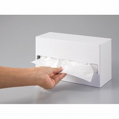 横から引っ張れることで、手を洗った際のしずくが次のペーパータオルに落ちにくい商品です。底面に滑り止めフィルム付。