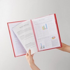 バラバラになりやすいクリアーホルダーをひとまとめ。書類が入ったホルダーをそのままはさむだけで書類をスッキリ整理収納。クリアーホルダーが冊子状にまとまるためパラパラと本をめくるように書類が探せます。