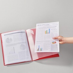 バラバラになりやすいクリアーホルダーをひとまとめ。書類が入ったホルダーをそのままはさむだけで書類をスッキリ整理収納。クリアーホルダーが冊子状にまとまるためパラパラと本をめくるように書類が探せます。