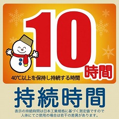 ●継続時間/10時間(40℃以上を保持し、持続する時間)