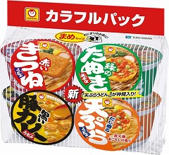 きつねうどん・天そば・カレーうどん・天ぷらうどん。人気のまめ和風4品を詰め合わせたカラフルな1袋。