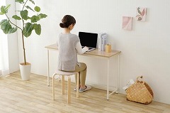 コンパクトなサイズでリモートワークにも最適なベーシックデスクです。脚底にアジャスターがついているので、がたつきを防止します。