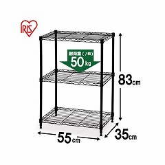 【3段】【幅55×奥行35×高さ80cm】【ポール直径19mm】【ネジ・クギ等不要の簡単組み立て】設置場所の雰囲気に合わせて選べるカラーメタルラックです。すっきり配置できるアジャスター仕様です。