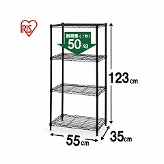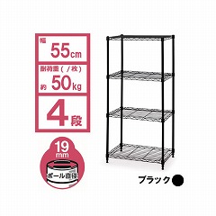 【4段】【幅55×奥行35×高さ123cm】【ポール直径19mm】【ネジ・クギ等不要の簡単組み立て】設置場所の雰囲気に合わせて選べるカラーメタルラックです。すっきり配置できるアジャスター仕様です。