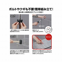 ●材質/棚板・ポール:スチール(粉体塗装)、棚板固定部品:ABS樹脂、アジャスター:スチール、ナイロン樹脂
