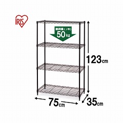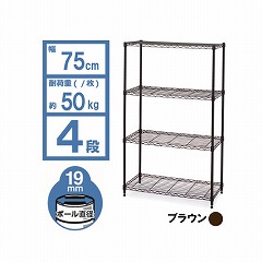 【4段】【幅75×奥行35×高さ123cm】【ポール直径19mm】【ネジ・クギ等不要の簡単組み立て】設置場所の雰囲気に合わせて選べるカラーメタルラックです。すっきり配置できるアジャスター仕様です。