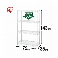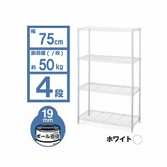 【4段】【幅75×奥行35×高さ143cm】【ポール直径19mm】【ネジ・クギ等不要の簡単組み立て】設置場所の雰囲気に合わせて選べるカラーメタルラックです。すっきり配置できるアジャスター仕様です。