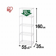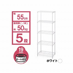 【5段】【幅55×奥行35×高さ160cm】【ポール直径19mm】省スペースでも、たくさん収納できるハイタイプのカラーメタルラックです。別売のキャスターを取り付けると移動も簡単に行えます。