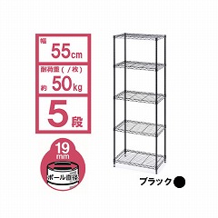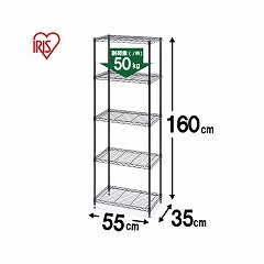 【5段】【幅55×奥行35×高さ160cm】【ポール直径19mm】省スペースでも、たくさん収納できるハイタイプのカラーメタルラックです。別売のキャスターを取り付けると移動も簡単に行えます。