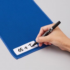 触れるとひんやり、タオルを濡らしてパッと振れば更に冷感を味わえます。名前が書くことができ便利です。