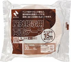 屋外専用の両面テープ。ベニヤ板やブロック塀など、風雨に強く凹凸面にもよくつきます。たっぷり使える15m長尺タイプ。安心の日本製です。