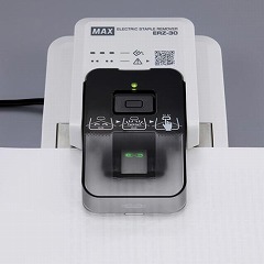 用紙を差し込み、ボタンを押すだけ!30枚までの用紙を電動でホッチキス針を外すことができる電動リムーバ。針を外す際、大きな穴などが開きにくく仕上がりきれい。リムーブ速度は約1秒で、作業時間を短縮できる!