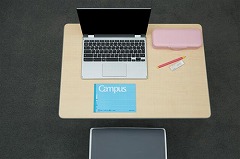 タブレット端末やパソコン前の省スペースで使えるハーフサイズのキャンパスノート(ドット入り罫線)。