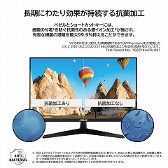 画面のカクつきやチラつき、フレームレートの低下を解消するAMDFreeSync機能搭載。独自の長期抗菌処理により、モニターのベゼルやショートカットキーに付着した細菌やカビの繁殖を抑制。