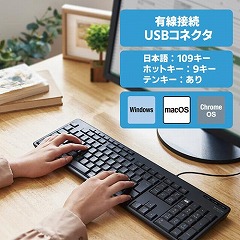 本格静音設計で打鍵音を約69%カット!Windows、ChromeOS、macOSで使用可能。さらに、日々のパソコン操作に安心をプラスする抗菌仕様の有線静音フルキーボード。