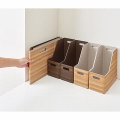 本物のようなおしゃれな木目の収納ボックス。軽くて丈夫な発泡PPで水にも強く濡れても安心。使わない時は薄く畳んで隙間に収納。