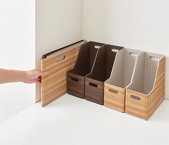 本物のようなおしゃれな木目の収納ボックス。軽くて丈夫な発泡PPで水にも強く濡れても安心。。使わない時は薄く畳んで隙間に収納。