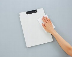 3段ポケットでカンタンに書類を整理できるクリップホルダー。アルコール、次亜塩素酸消毒可能!