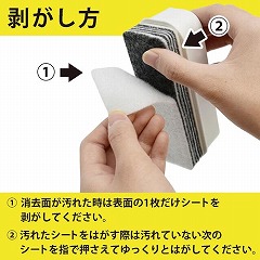 カバー部分に抗菌材を使用したホワイトボードイレーザーです。シートは10層のはがせるタイプで使い切り。汚れたらはがすだけで安心して使えます