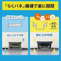 軽い力で開き、開口部のラバーグリップで書類やラミネート、クリアフォルダもしっかり保持できます