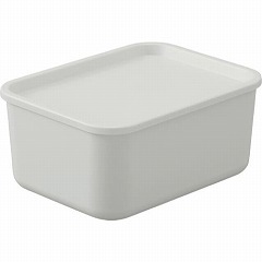 シンプルで丸みのあるやわらかなデザインのフタ付き積み重ねBOXです。フタにふちがあるので、積み重ねても安定感があります。フタはトレーとして使用でき、小物も置けます。丸洗いができるので衛生的です。