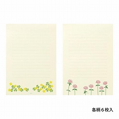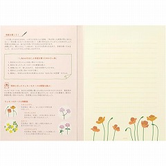 ラッキーモチーフを取り入れた、本のように開いて書けるオリジナル仕様の便箋です。ラッキーモチーフ:ナガミヒナゲシ、ヤナギハナガサ、カタバミ、ムラサキツメクサ