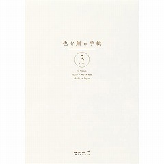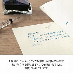 気分や情景を色に込めて贈る便箋。その日の気分、伝えたい情景から連想する色を選んで手紙を書けます。1枚目の白い紙はビュバー(インク吸取紙)で、書いた文字を押さえてインクを吸い取るのにお使いいただけます。