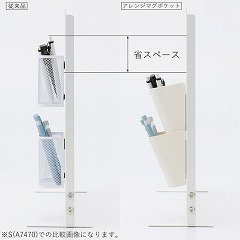 スチール面に貼り付けて省スペースで使用可能なマグネット付きポケット。SサイズやLサイズと組み合わせて省スペースでお使いいただけます。