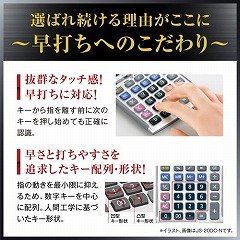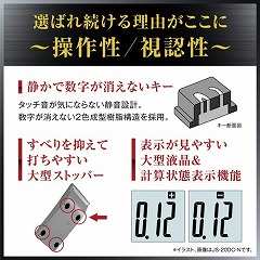 日数&時間計算機能つき本格実務電卓。ジャストサイズ、12桁表示、安心の5年保証モデル。優れた早打ち対応設計、操作性、視認性など、ひとクラス上の性能が業務を強力にサポート。