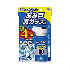 あみ戸や窓ガラスにワンプッシュするだけで、手軽にイヤな虫を虫よけ&殺虫できる超速乾タイプ。ベタつかず、汚れにくい虫よけです。あみ戸や窓ガラスにプッシュするだけで虫よけ効果が約3ヵ月間持続します。