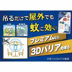 吊るだけで蚊に効く、プレートタイプの簡単虫よけ。屋内への蚊の侵入阻止と、屋外で蚊を寄せ付けない二つの効果を発揮します。250日用無臭。