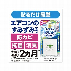 エアコンの天面に貼るだけでエアコン内部のすみずみまで防カビ・抗菌・消臭(※全ての菌を抗菌するわけではありません)