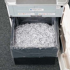 シュレッダー用に開発したゴミ処理用ポリ袋です。ポリエチレンですから油や水に強く、ゴミ箱にセットして、いっぱいになったら袋ごと捨ててください。燃やしても有害ガスは発生しません。