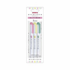 淡い色合いのラインマーカー「マイルドライナー」のほんのり蛍光色の3色セット。落ち着いた色合いのインクなので目がチカチカしないで疲れにくく、書類のチェック、手帳や参考書のマーキングに最適です。