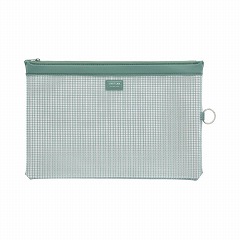 メッシュの入った透明素材の丈夫なケース。透明素材なので中身が一目瞭然。吊り下げ用フック付きで、保管にも便利です。