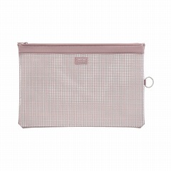 メッシュの入った透明素材の丈夫なケース。透明素材なので中身が一目瞭然。吊り下げ用フック付きで、保管にも便利です。