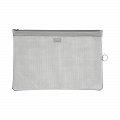 メッシュの入った透明素材の丈夫なケース。透明素材なので中身が一目瞭然。吊り下げ用フック付きで、保管にも便利です。