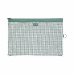 メッシュの入った透明素材の丈夫なケース。透明素材なので中身が一目瞭然。吊り下げ用フック付きで、保管にも便利です。