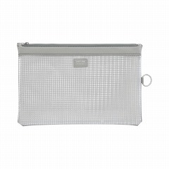 メッシュの入った透明素材の丈夫なケース。透明素材なので中身が一目瞭然。吊り下げ用フック付きで、保管にも便利です。